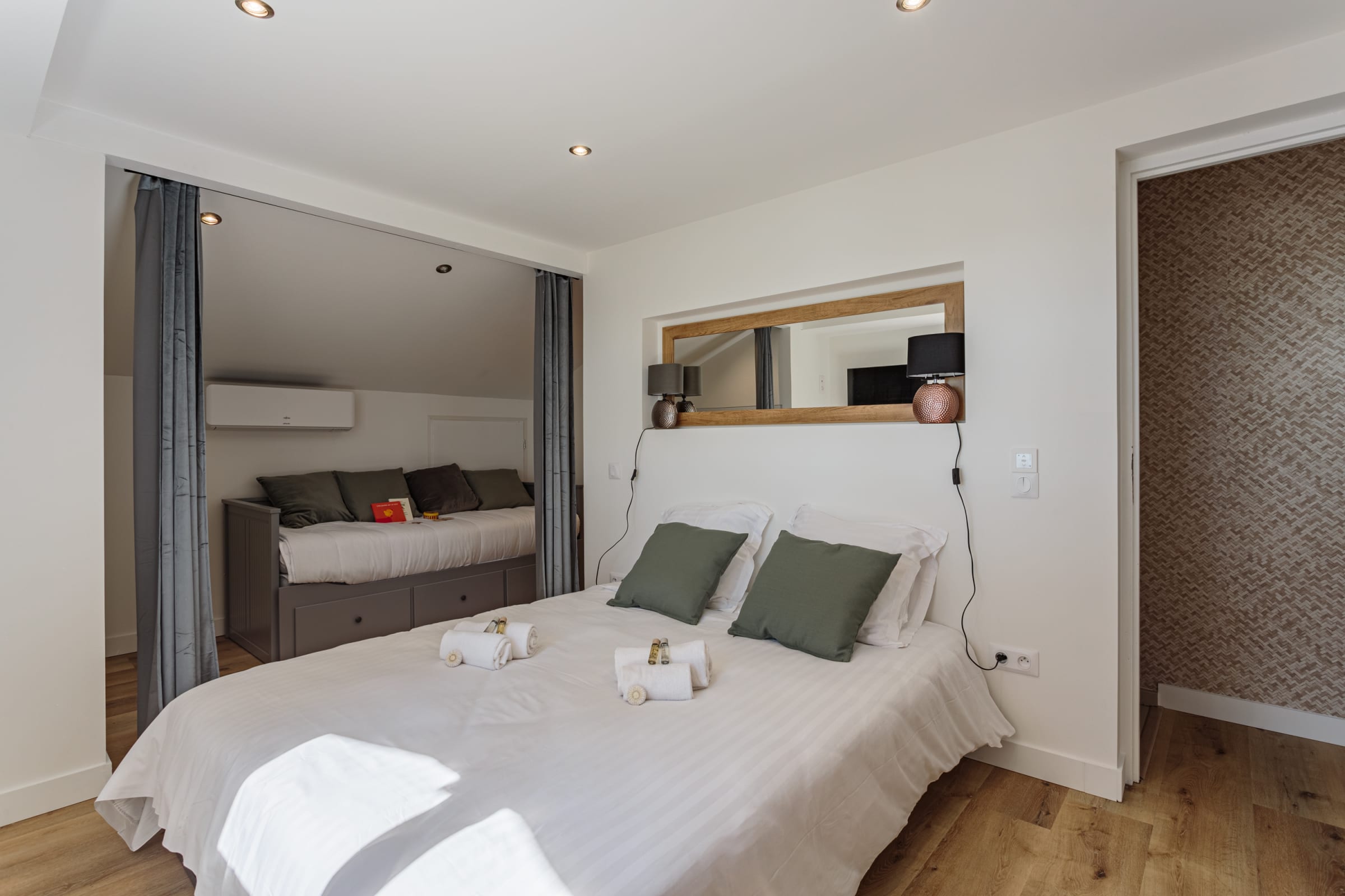 → Avant votre arrivée et après votre départ, notre équipe réalise un ménage de qualité hôtelière et met à votre disposition des serviettes de bain, du linge de lit de qualité hôtelière ainsi qu’une ligne de produits de soin naturels.