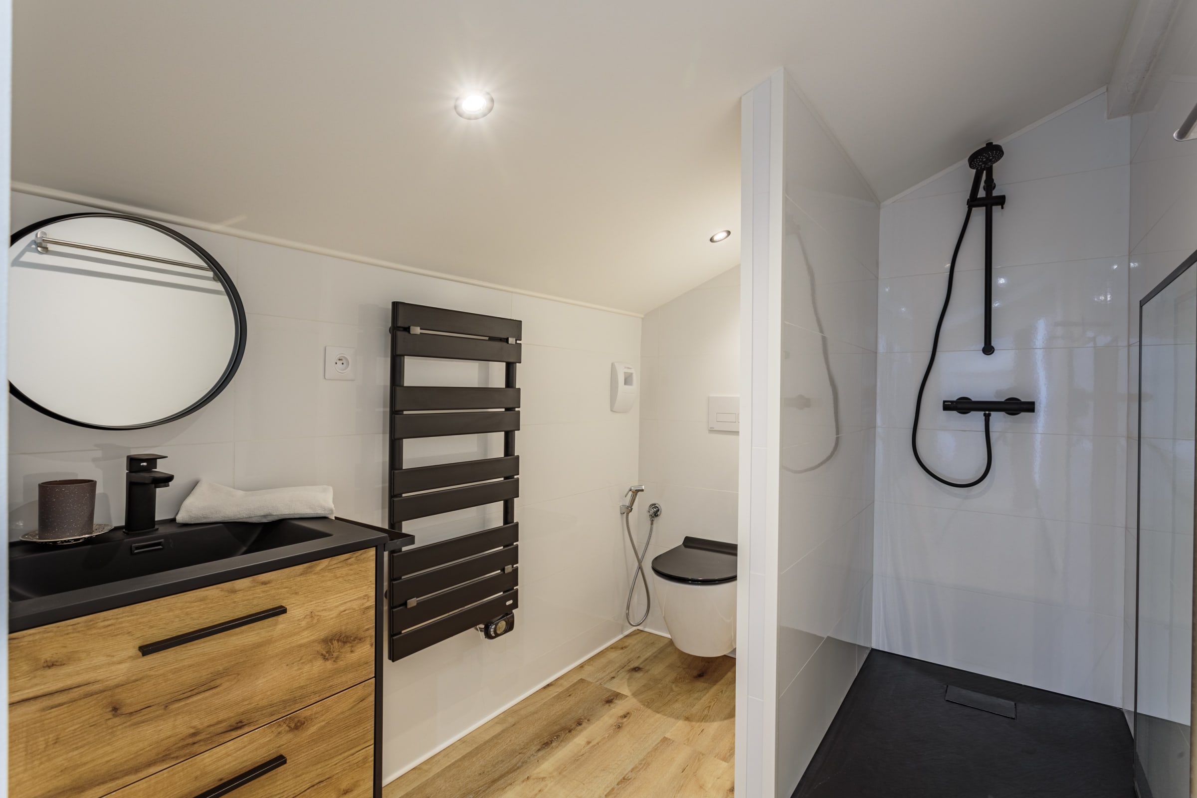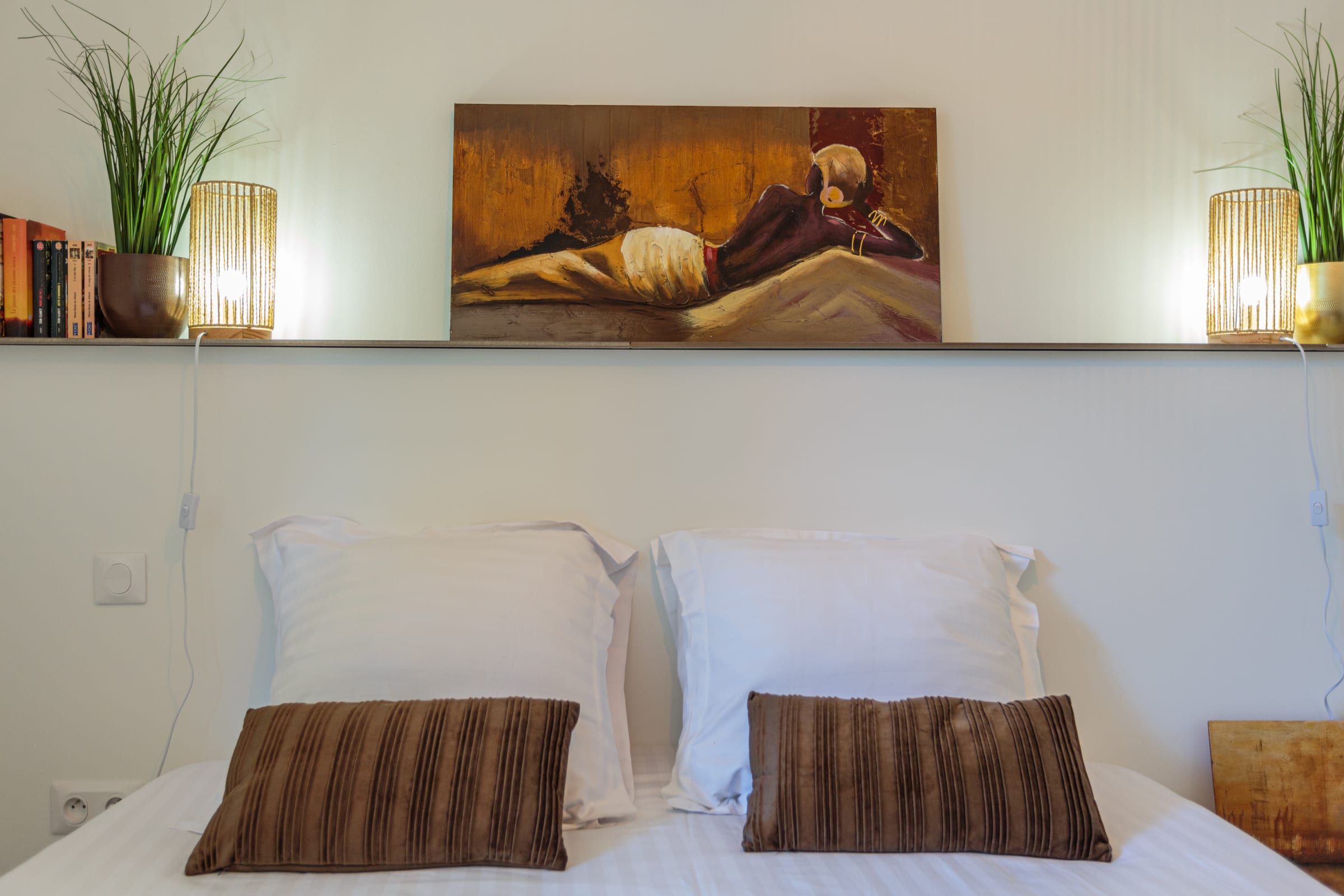- une chambre avec un lit queen size (160 cm) et une salle de bain privative (douche à l'italienne),